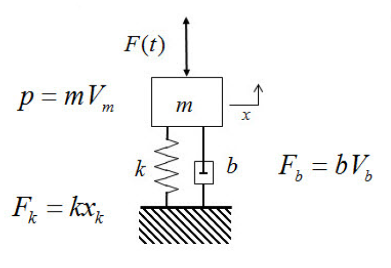 下面以一个典型二阶系统为例,来分析如何应用FRF结果,分析指导机械设计。系统如下所示。