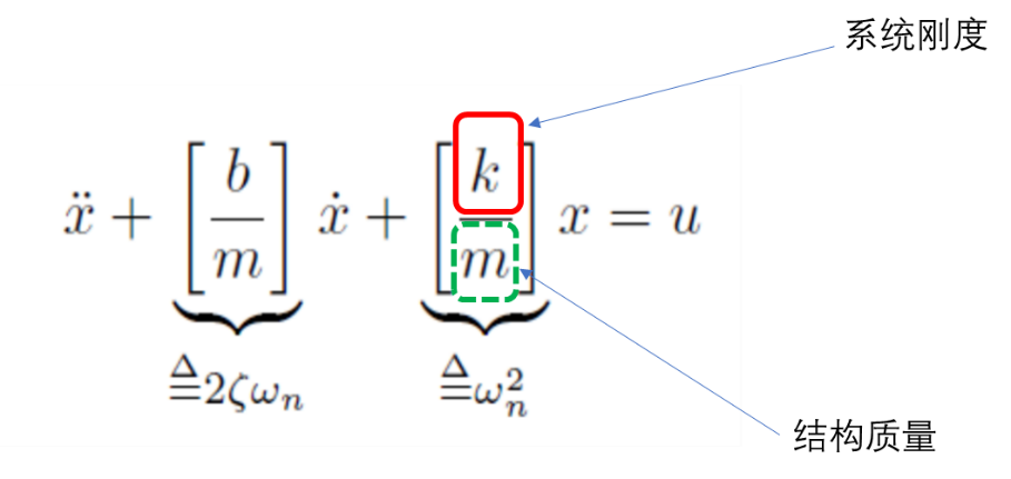 此处公式回归到机械工程师的认识:提高动态响应,必须采用更高刚度的材料,或者改善设计加强结构,来提高k; 或者优化设计,减轻质量,来减小k