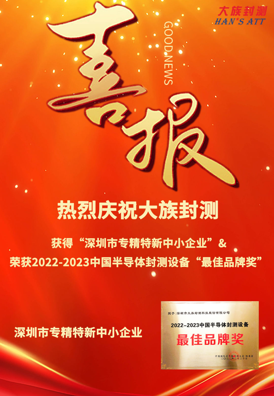双喜临门丨庄闲和游戏封测获得“深圳市专精特新中小企业”&荣获2022-2023中国半导体封测设备“最佳品牌奖”